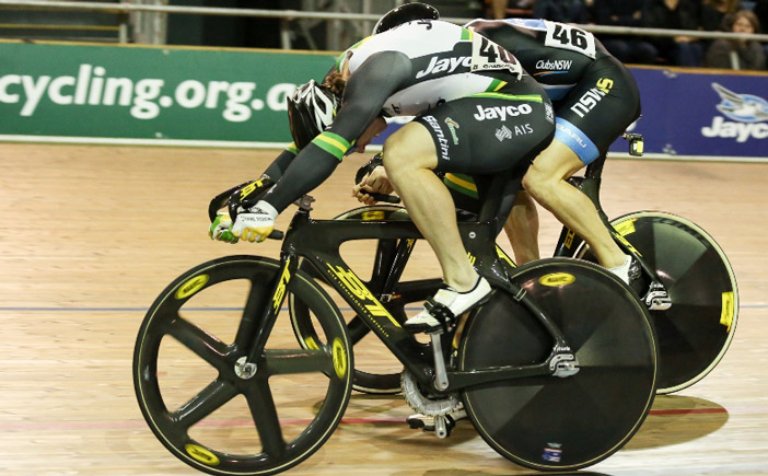 Armidale rider Mitch Bullen came agonisingly close to winning the UCI Men’s Sprint competition at the 79th Melbourne Cup On Wheels (MCOW) Carnival last night against a world class field of riders from nine countries. Great Britain’s Callum Skinner was the fastest qualifier in a very slick 10.125 seconds with Mitch second-fastest at 0.09s down. However, Skinner crashed heavily in the semi-final round and was unable to continue. The Final was a hotly contested All-Australian battle between hometown hero Shane Perkins and Mitch. Perkins was victorious 2-0 but both heats were exceptionally close. The photo below shows the finish of Heat 1 and Heat 2 was even closer.