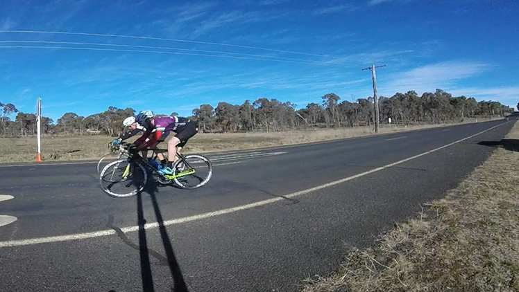 Up ahead, Dave Munday was having way too much fun and roped Rob into a perfectly-executed move on what was now the A-Grade race. Coming from the back they passed on both sides, quickly establishing a good gap but with Rob’s Garmin congratulating him on his highest-ever heart rate it was all down to Dave and the gap was closed down just before the half-way mark.