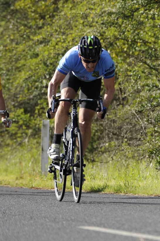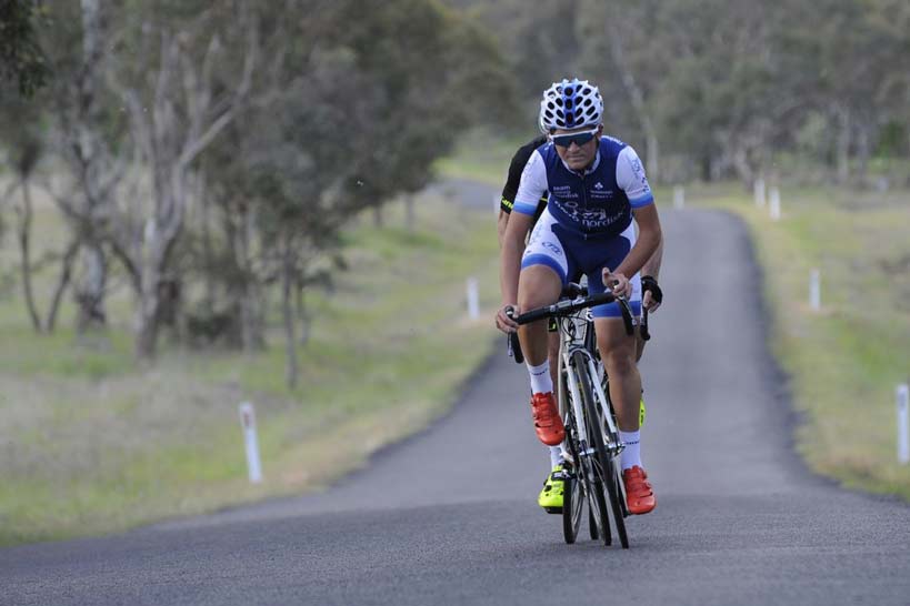 Captain Creagan certainly seems to be enjoying his spell in the Go group and this week he had another familiar face back into the mix for company. Chris Stace did well to hang with him until the top of Blacks Hill but by then PC was stretching his legs just a bit too much and off he went. Behind Wilko’s group on the road at 9 mins Alwyn Miller (Inverell) and Phil Hess were looking useful, keeping Houlty and Hugh at bay for the time being but those guys clearly meant business. With a 2 minute advantage on Dave and Sam Munday, they knew their best chance was to go hard and stay away and that they did, only giving 10s to the Scratch pair by the top of Blacks Hill on the outward leg.