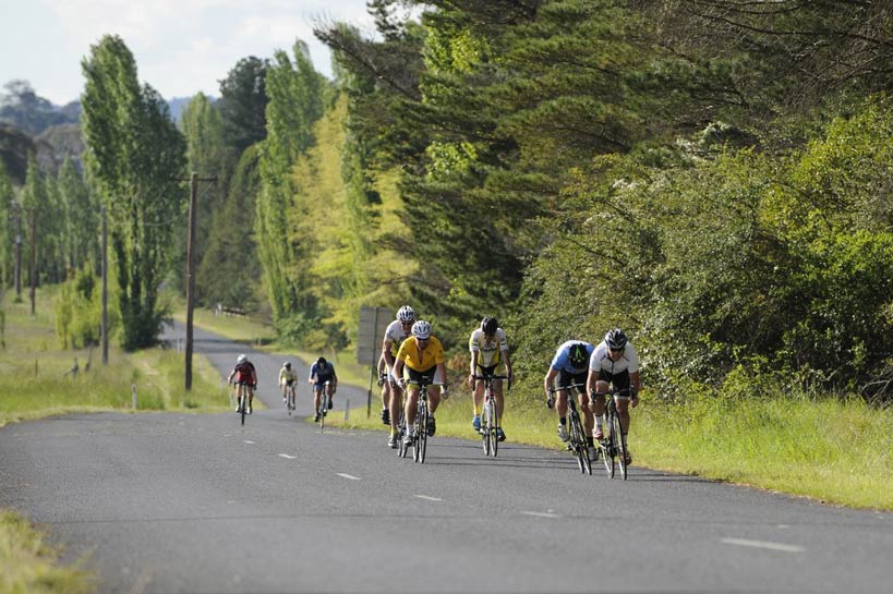 In the end the bigger bunch did catch the Captain, on his climb up from Dumaresq station. He managed to tag onto the back and then it was a bit of cat and mouse for the six riders, not wanting to do too much work on the front but recognising the danger behind. Bourkey was rolling turns well and supporting The Cannibal who seemed to find himself on the front by default as the finishing line approached. As they hit the final kilometre Sprintmonster Munday could just be seen emerging in the distance following a brutal effort with Houlty over the closing stages. Up-front, Johnny was winding it up and while Wilko gamely chased his wheel, he didn’t have the power to mount a challenge. All six riders just made it home before Hugh blasted through, into the bunch just over the line and with a deficit of just 3s on the winner and almost 1m:30s ahead of Scratch.