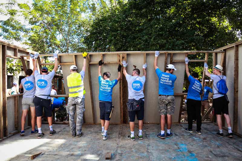 At the end of 2016 Sam was at a training camp in the Dominican Republic involving some pretty interesting activities totally unrelated to cycling. TNN collaborate with the organisation Hope Sports, who take professional athletes to very poor communities to build homes, and Sam’s team – both cyclists and staff – built three houses within a small community over a few days.