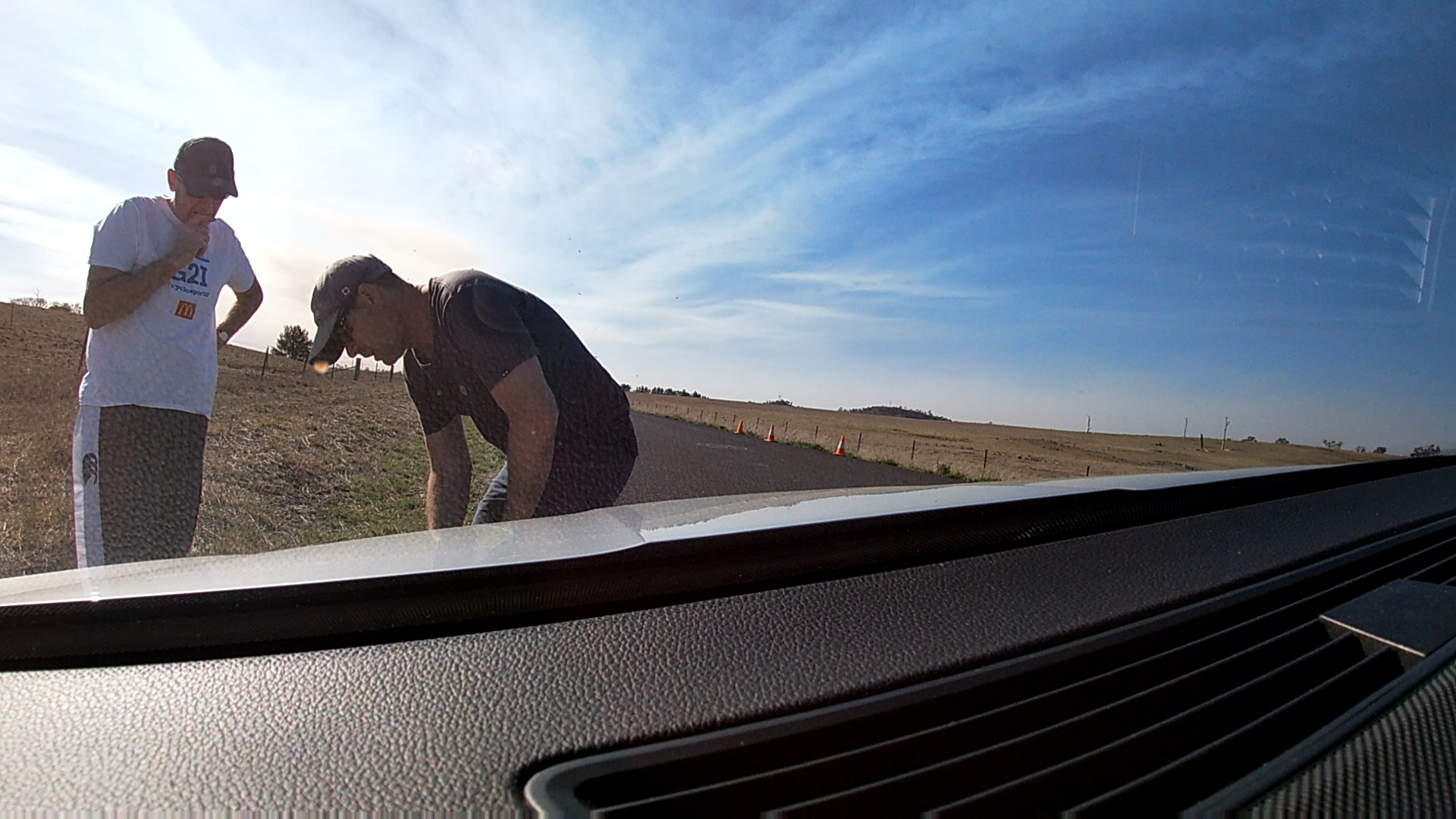 One last notable incident to report involved PC’s car…as you can see from the GoPro footage at the turn the Captain and the Eagle were busy checking out some recent damage to the front end which even miracle-mechanic Johnny couldn’t fix..whats the story PC?!